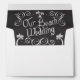 Trendy and popular chalkboard blackboard background in charcoal grey with white hand-written look text. Reminiscent of an old town shoppe or vintage appeal. Bring back vintage style with a dusty slate writing board. The shore is a perfect place to celebrate the big wedding day nuptials with this theme, use this keepsake as a favour or cherished memento for times to come. Design Copyright © CustomInvitesOnline.com