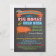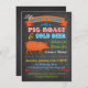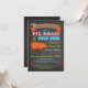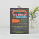 Colourful, rustic Pig roast "roast and toast" party invitation on a chalkboard background. Features a orange, peeled paint, pig, banner and fun fonts. Great for rehearsal dinner, birthdays, family reunions or any pig roast event.