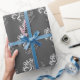 Personalized Christmas Holiday gift wrapping paper -- Elegant male and female reindeer in joyful winter play, their majestic antlers magically decorated with fancy swirls and dangle ornaments. Modern folk-art chalk+art drawing with a festive winter white pine branches beneath their prancing hooves and casual handwritten chalk-style lettering. Customize it with your first names, family name or personalized greeting. Dress up all the gifts under your tree with these whimsical woodland creatures to create a unique theme. Non-religious design makes it perfect for holiday business or corporate gift-giving. Can also be customized for the special people on your list ... ideal for newlyweds celebrating their first holiday as Mr. and Mrs. ... Bright and cheerful, sophisticated, stylish and classy way to celebrate happy winter holidays and share the merry spirit of the season with friends and family in traditional but trendy rustic charm.