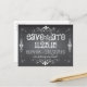Curly scribbles and doodles galore decorates this fun and whimsical Save the Date chalkboard postcard.