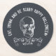 Custom printed Halloween party coasters to match our Vintage Skull collection. Personalize it with your custom text around a distressed vintage skull illustration and scroll ornament on a charcoal grey chalkboard background. Use the design tools to edit the text fonts and colours and add your own photos and text to create your own unique Halloween party decor.