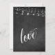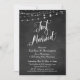 This sophisticated but rustic wedding reception card features a textured chalkboard background image overlaid with a graphic depicting strings of white twinkling light strings. I've used an elegant, swirling script font to render graphics depicting the words "Just Married"; on the back I've placed the word "love" in the same "fancy font". Your own text is easily added for customizing this template as little or much as you wish. Use the template fields to simply enter your personal details, and click to customize further if you'd like to re-position any of the unlocked layers. There is a faint, opaque black overlay above the blackboard layer; remove it if you'd rather a lighter chalkboard background. Please do not hesitate to reach out to me for special requests or for assistance with customization.