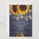 Floral elegant fall sweet sixteen / 16th birthday party invitation template on dark midnight navy blue chalkboard featuring bouquets of yellow golden sunflowers and strings of twinkle lights. Fill in your information in the spots, You can choose to customize it further changing fonts and colours of lettering. ---- The invitation is suitable for end of summer | fall autumn outdoor garden evening / backyard / floral chic birthdays parties. --- If you need assistance, please contact me!