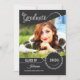 Chalkboard theme on both sides with yellow 'chalk' coloured accents in the text. Custom front and back with the graduate's photo and the pertinent information to announce the graduation and/or invite folks to the ceremony.