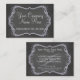 COLOR PALETTE: Black, white and grey tones. BUSINESS CATEGORIES: This design can be used across a wide range of businesses but is especially suited to fine gift shops, retail, and restaurants or cafes (especially if you use chalkboards for your menu selections). DESIGN COLLECTION: Matching original art chalkboard business cards. This modern typography chalkboard style wedding invitation sets design was created from hand lettered artwork drawn by Audrey Jeanne Roberts. Reminding us of simpler times in the vintage era yet it is a very elegant, sophisticated and contemporary stylish invite set! All of the calligraphy elements are original art that have been embellished with swirls, swashes, flourishes and other swirled leaf elements, dots and shadows. The bracket style frame has the feel of a French cafe sign. ON THE REVERSE SIDE: is a matching yet different swirling frame with leaves the hand drawn soft flourish swirl in the background. This set is easy to personalize using the template fields provided. There is a complete collection of matching products available.