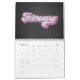 Chalkboard Typography months with a 70s bubble script font with patterned coloured shadows. Each month has a different colour and pattern. Text only. Personalize this by picking the holidays and years.
