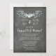 Custom engagement party invitations in rustic country chalkboard pattern with delicate spring vintage floral illustrations in light blue and white.