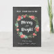 Merry and bright custom name Christmas greeting card in rustic chalkboard pattern with vintage flowers wreath illustration and hand lettered style text, wish your friends and family well this holiday season with this modern greeting card.