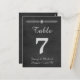 This retro fashion table number card features a pretty arrow and flower design at the top, with the table number in matching silver grey. The bride and groom first names are in matching silver grey at the bottom. All the text is easy to customize. The back is matching chalkboard grey black. Chic and simple, with just the right touch of old fashioned style! This card will work well with many chalkboard theme weddings.