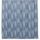 This shower curtain features a chalky textured abstract pattern in shades of denim blue.