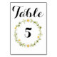 Watercolor chamomile flower wreath has small white flowers with yellow centres and green leaves. Customize table number