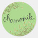 A classic round label that displays chamomile plant with green leaves, flowers and inscription is ideal if you are holding a dry chamomile herbs in a jar or container at home.