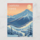 Snowy mountains of Chamonix, France, in Europe! We hope you're having a wonderful ski vacation. This postcard features a gorgeous blue-grey mountain landscape in front of yellow orange sky.