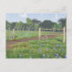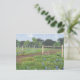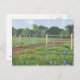 Cette carte postale présente une oeuvre originale d'un chemin de terre traversant un champ de bleus, créée à Vue Esprit par l'artiste Jayne Wilson.