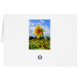 Une ferme se trouve au bord d'un champ de beaux tournesols. Sur le dos de la carte se trouve un tournesol debout haut.