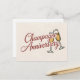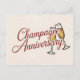 An elegant and festive 2D digital graphic featuring the words "Champagne Anniversary" written in a sophisticated dark red cursive script. Behind the text, two stylized champagne flutes filled with a golden bubbly liquid are shown clinking together in a toast. Set against a neutral off-white background, this high-quality illustration is perfect for wedding anniversaries.