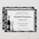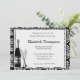 Elegant Bridal Shower invitation with a bottle of champagne and glasses. Background is an elegant black and white pattern. Customize with your shower info.