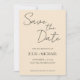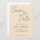 Simple style wedding save-the-date invitations that feature black, stylized script on a trendy, champagne colour background. Edit and replace names, date, and location with your own. Select your invitation size and paper style.