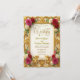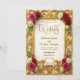 Set the tone for a formal evening union with this ornate design, featuring vintage botanical art and a printed gold foil effect for sophisticated elegance.This design features a symmetrical composition anchored by a printed faux gold embossed frame with intricate scrolling filigree, evoking a classic Baroque aesthetic. The artwork displays realistic botanical illustrations of blush pink and deep red roses with muted green foliage, surrounding a central soft ivory panel. Two small cherub angels hold a delicate ribbon banner at the crest, adding a touch of Victorian romance. The text is presented in an elegant flowing calligraphy script paired with traditional serif typography.This is a flat printed image with a faux foil and texture effect; it does not contain actual raised metal or embossed paper.