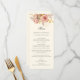 Menu de mariage élégant avec une aquarelle à motifs floraux avec roses roses roses roses roses au champagne. L'arrière du menu a une fausse couronne d'or de style moderne avec les initiales monogrammes du couple mariage. Veuillez noter que les détails dorés dans ce design sont des imitations gaufrées d'or, pas de feuille d'or.