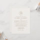 A sophisticated wedding invitation featuring a delicate floral illustration inside an oval frame with space for personalized initials. Designed in an elegant champagne colour palette, this invitation blends classic typography with a refined minimal layout. Perfect for couples seeking timeless, romantic wedding stationery. All text and colours can be fully edited, making it easy to match your wedding theme or create your own colour variation.