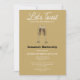 This design features two champagne flutes and all template text details. The back features the same art centre on the layout. Personalize the text in the template fields, remove text or edit using the design tool to select a font style, size, and colour you prefer.