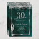 Champagne Glass Silver Confetti Green 30th Invitation