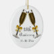 Champagne Glasses Gold Bow Anniversary Custom Year Ceramic Ornament