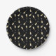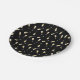 Celebrate in style with elegant birthday paper plates. This design features a scattered pattern of champagne glasses on a black background.  The classic black, white, and gold palette exudes sophistication.  Perfect for setting the tone for an unforgettable celebration!    © Kimbellished, LLC