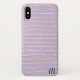 Features a stripe pattern in champagne gold simulated foil, on a violet background. Personalize with initials.
