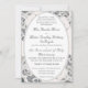 This design encompasses the essence of elegance. A champagne-pink background image of delicate lace surrounds your text which is displayed in a silver-coloured Nuptial font and encircled by a silver-coloured oval. Text follows the traditional Catholic format for a wedding invitation. Entire design is framed by a silver border. Ideal for a traditional wedding.