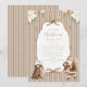 A soft and elegant Christmas invitation featuring a champagne striped background, delicate poinsettia flowers, and cozy holiday details like a teddy bear and Santa in warm neutral tones. Perfect for festive gatherings with a refined, rustic-luxe feel that blends timeless Christmas charm with modern minimalism.