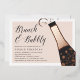 Pop the champagne! Cute bridal shower brunch invitations feature a black and rose gold foil bottle of champagne with the words "brunch & bubbly" in calligraphy script lettering. Personalize with your bridal shower brunch details beneath.