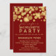Caractéristiques de conception ce élégantes modernes une conception de point de bokeh d'or avec un arrière - plan rouge. Tandis que cet invitation particulier est fait pour des parties de bachelorette, il est également grand pour des parties de fiançailles, d'anniversaire et de réveillon de la Saint Sylvestre. Personnalisez cette invitation avec les détails de votre partie. Le dos a également l'abondance de la pièce pour information.