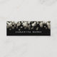 Chic and elegant business cards in a paper-saving mini size feature white and champagne bokeh lights on a crisp black background, with modern white lettering. Add your full contact information to the back. A unique and elegant choice for any occupation; example shown for event planners.