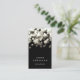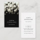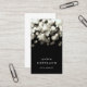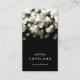 Simple and elegant vertical business card design features white and champagne bokeh lights on a crisp black background, with modern white lettering. Personalize with two lines of custom text on the front, and add your full contact information to the reverse side.