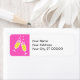 Return address labels for your celebration. Bright pink and yellow vector design. Two champagne flutes with bubbly.