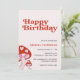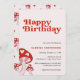 Notre adorable invitation de fête d'anniversaire de champignons rend votre baby shower accueillant et doux! Cette carte présente deux mignons champignons avec le coeur sur le dessus, et le texte "Joyeux Anniversaire" dans une typographie amusante et branchée.