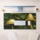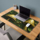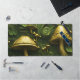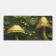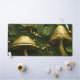 Motif de champignons vert et or sur arrière - plan fleuri.