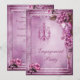 Elegant custom engagement party invitations with a pretty pink, purple and lilac shabby chic vintage printed wood effect frame collage with and ornate pink chandelier, beautiful printed flowers, leafs, ornate flourishes, swirls, tassels, and a pretty, cute pink love heart hanging from a chain. These classy, glamourous, floral girly invites have an old fashioned elegance look and are especially suitable for spring and summer events, but also perfect for autumn / fall and winter. Stylish rustic country garden nature themed invites beautifully decorated on both sides. All of the text can be easily customized to meet your needs and you can change the font style, colour and size of font if you desire. If you need any assistance customizing your product please contact me through my store and I will be happy to help. I have matching products in my store. PLEASE NOTE: All invites on Zazzle have flat printed images.