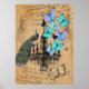 chandelier modern vintage peacock blue butterfly poster
