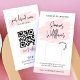 Laissez les clients découvrir vos parfums avec cette carte d'échantillon d'odeur féminine. Conçu dans une esthétique blanche et rose ceinturée (ou éditer à n'importe quelle couleur !) avec des polices de script modernes, ce modèle comprend de l'espace pour votre marque ou logo, un code QR personnalisé pour des commandes faciles, et une zone dédiée pour joindre un échantillon de votre bougie, de cire fondue, de vaporisateur de chambre ou d'odeur d'huile essentielle. Parfait pour glisser dans des paquets ou des cadeaux d'évènements, cette carte de testeur de parfum vous aide à partager de nouvelles odeurs et à encourager les commandes de clients potentiels.