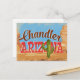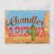 Chandler Arizona neo vintage travel poster wall art in cartoon retro style featuring the desert, a cactus and red rock environment.