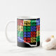 Le design de la tasse à café disant "Chandler" est coloré noir avec de l'encre rouge, jaune, verte, bleue et blanche. Il est idéal pour le café ou le thé le matin. Un micro-ondes et un lave-vaisselle sont à votre disposition.