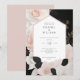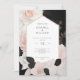 Elegant Chanel-inspired wedding invitation featuring blush pink florals and foliage with chic black accents. Creating a blend of luxury and romance.
