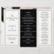 Elevate your wedding day with this Chanel-inspired tri-fold program. The black and white design features dramatic bejeweled flowers in sheer pink and white, adding a touch of luxury to your ceremony. Customize it to guide your guests through every special moment of your day.