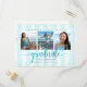 Make sure all your friends and relatives will still be able to celebrate your graduate’s milestone event, regardless of current global unforeseen circumstances. Send out this stunning, simple, modern, girly, personalized three photo “Change the Date” postcard for an event to remember. Sparkly turquoise typography script overlays a baby turquoise blue and white striped background with tiny turquoise and gold confetti dots. Add three photos of your choice and personalize the custom text with your graduate’s name, class year, school name and new date information. Your custom message, a turquoise blue graduation cap icon and your return address adorn the back. Matching invites, thank you cards, cap toppers, napkins, plates and other graduation goodies are also available in this trendy and stylish collection. Make sure their special celebration will still be as festive as originally planned!