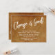 Keep your friends and family up to date with your new address using these simple, elegant announcement cards. Whether you're a newlywed or just want a unique design for letting your tribe know how to find you, this card is versatile enough for anyone. It features pretty typography graphics that read "Change is Good!" on the front and "Stay in Touch!" on the back, using a modern, casual, handwritten script font. Use the template fields to add all your own details to personalize this design for your own use. The white type was placed over an orange vintage textured grunge background. If you'd rather replace this with a different background image, that's also possible! // 105 //