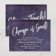 Keep your friends and family up to date with your new address using these simple, elegant announcement cards. Whether you're a newlywed or just want a unique design for letting your tribe know how to find you, this card is versatile enough for anyone. It features pretty typography graphics that read "Change is Good!" on the front and "Stay in Touch!" on the back, using a modern, casual, handwritten script font. Use the template fields to add all your own details to personalize this design for your own use. The white type was placed over a dark purple vintage textured grunge background. If you'd rather replace this with a different background image, that's also possible! // 105 //