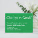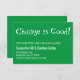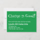 In this fun piece, a playful font was used to render the words "Change is Good!" and "Stay in Touch!" on the back. Your details will appear in a complementary sans-serif font. The background can be changed to any colour you prefer; fonts and layout are also fully customizable.